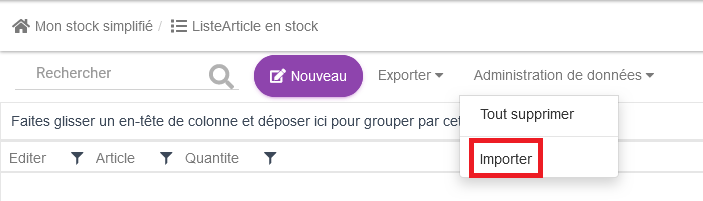 Dans le menu "Administration de données", cliquer sur "Importer".