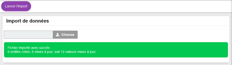 Une fois l'import effectué, la liste affichée permet de voir les éléments.