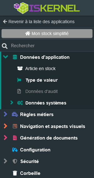 En ce qui concerne la plateforme ISKernel, nous allons considérer qu'il faut créer une entité nommée "Article en stock" qui contiendra les champs de données suivants: