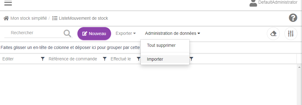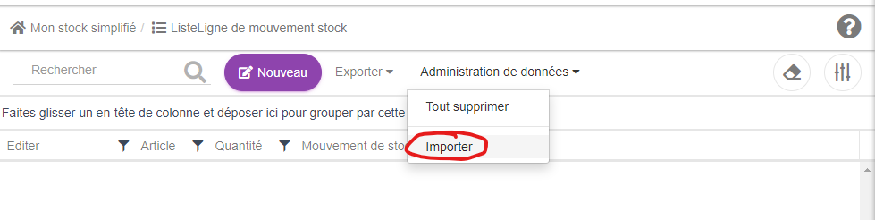 Dans le menu "Administration de données", cliquer sur "Importer".