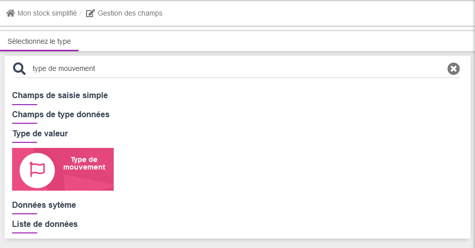 puis sélectionnez le champ "Type de mouvement"