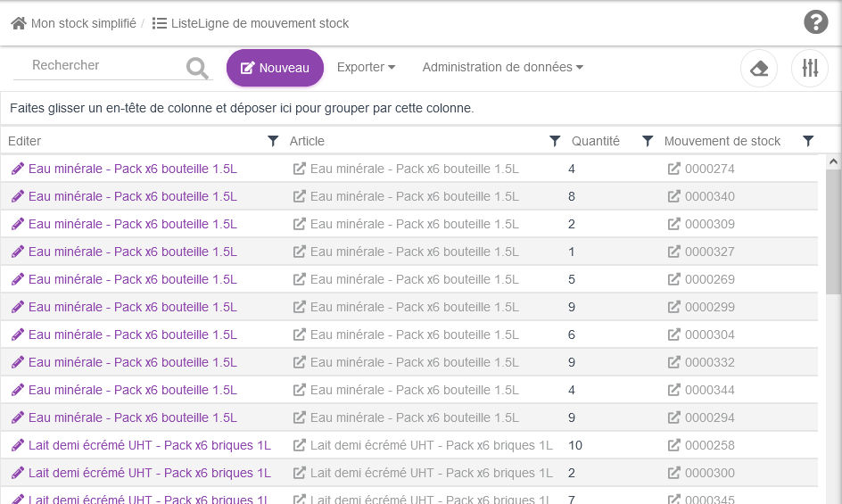 De plus, à fin de nous simplifier la mise en place, nous allons utiliser le même élement pour faire à la fois les entrées et les sorties de stock.