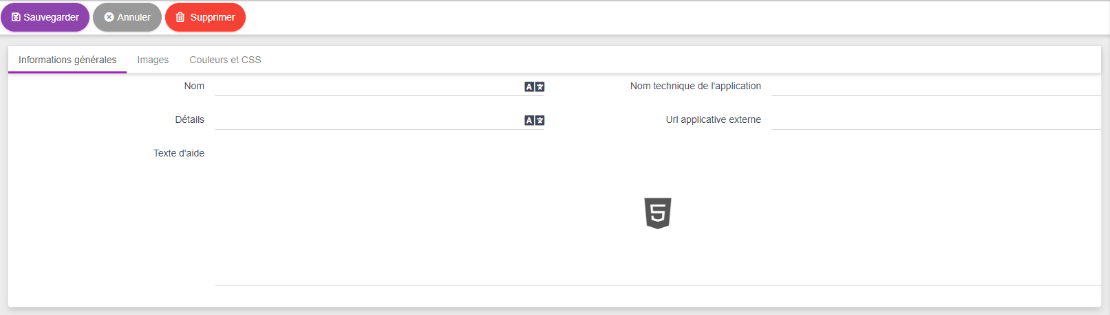 Page de création ou de mise à jour d'un portail applicatif