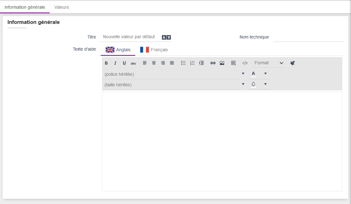 cet onglet permet d’assigner la liste des binômes clé-valeur à la donnée.