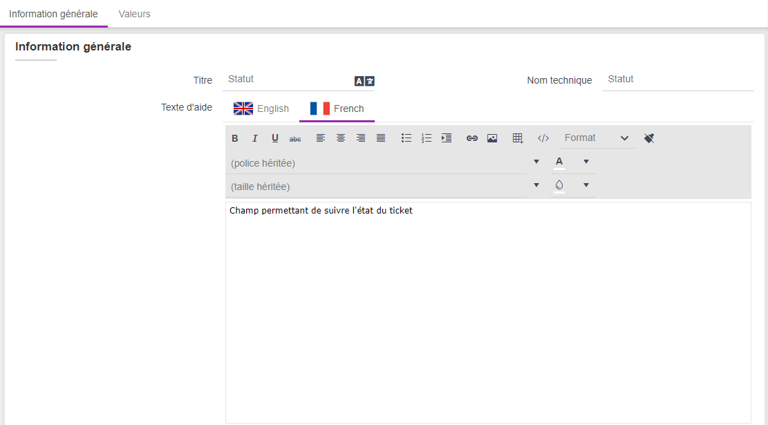c’est un champ pouvant être multilingue permettant d’identifier la valeur dans l’application.